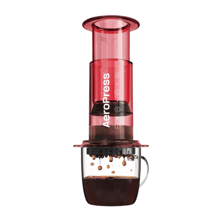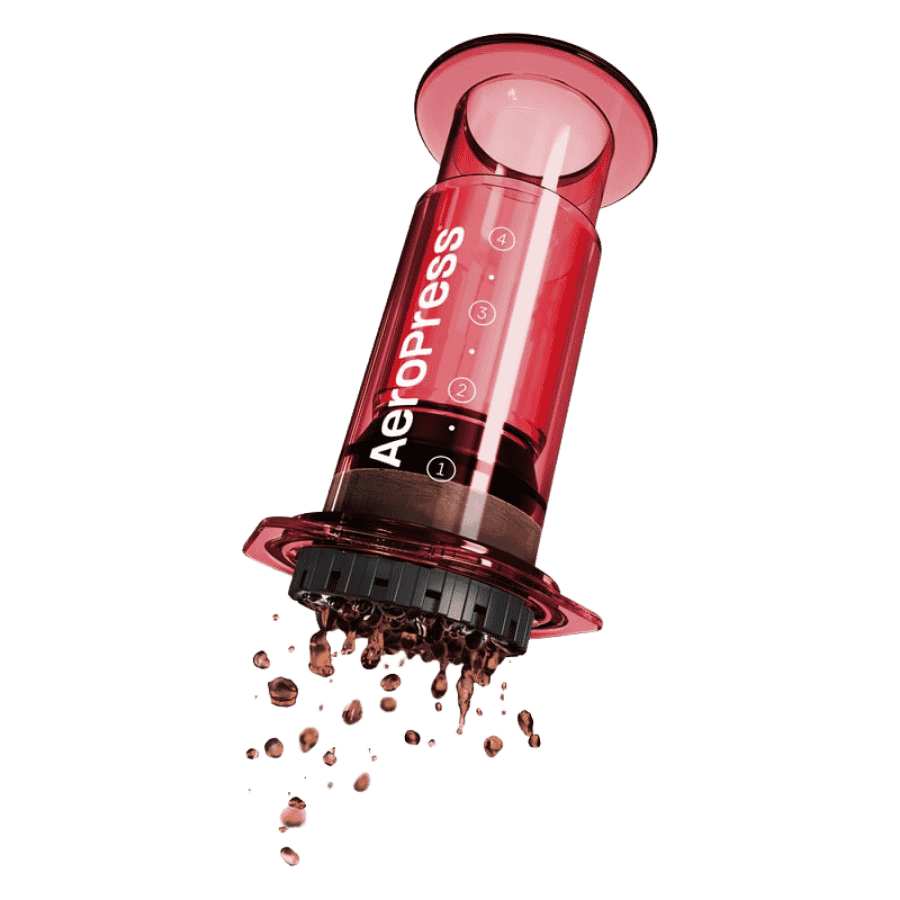 - AeroPress Clear Red – przezroczysty korpus w intensywnym czerwonym kolorze. Widzisz cały proces i masz pełną kontrolę.