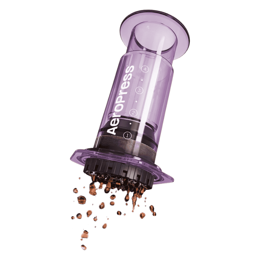 - AeroPress Clear Purple – przezroczysty korpus w głębokim, eleganckim fioletowym kolorze. Widzisz cały proces i masz pełną kontrolę.