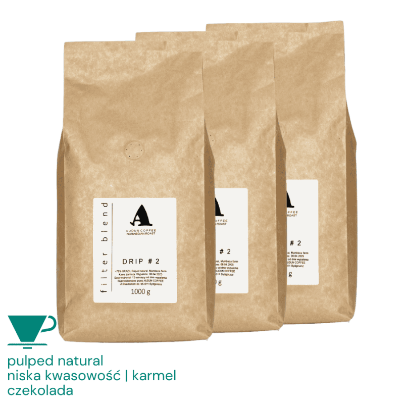 Zestaw 3 x 1 kg Kawa ziarnista Audun Drip No. 2 – Zapas słodyczy od Mistrza Świata – nuty karmelu i czekolady