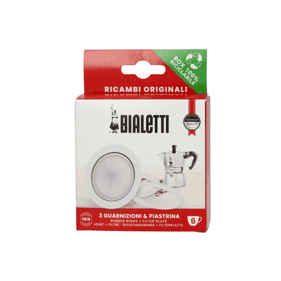 Oryginalne uszczelki i sitko Bialetti do modeli 6TZ (zarówno aluminiowych, jak i Induction) to prosty sposób, by Twoja kawiarka parzyła idealnie przez lata. Wymiana co 6–12 miesięcy gwarantuje szczelność i pełny smak espresso bez wycieków.