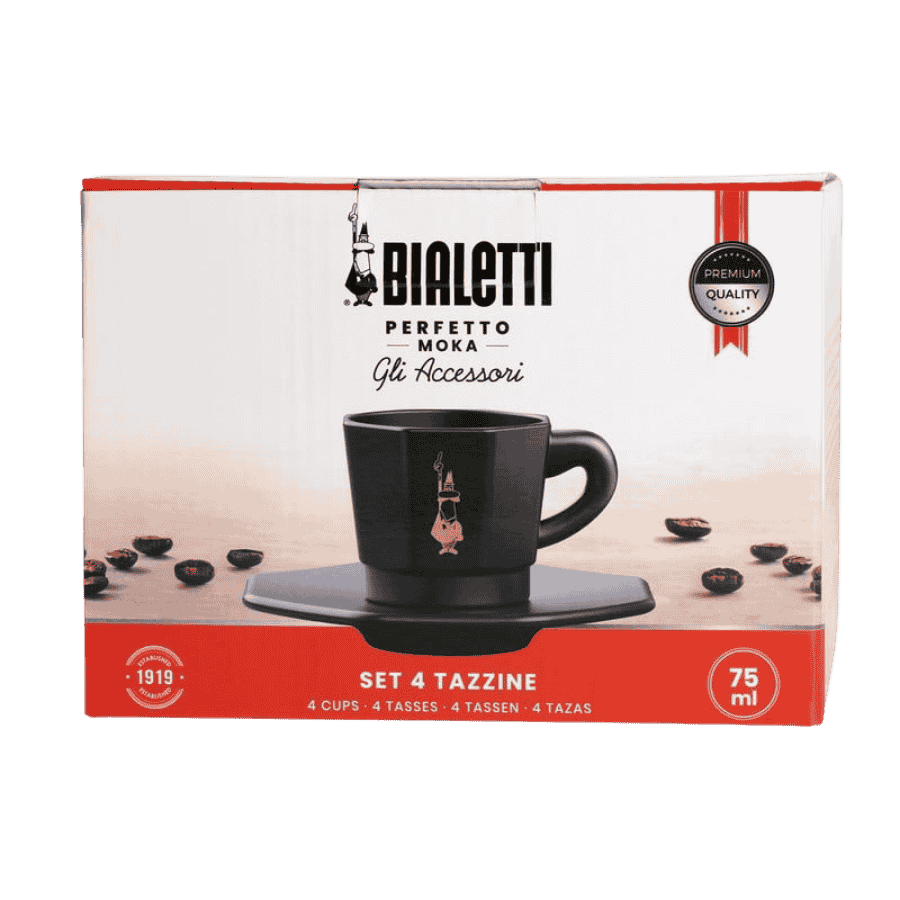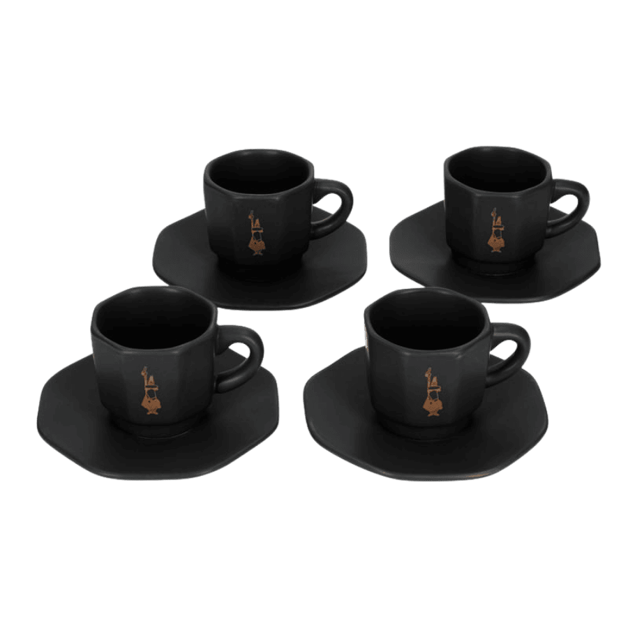 Zestaw czterech porcelanowych filiżanek Bialetti to kwintesencja włoskiego stylu. Matowe, czarne wykończenie przełamane subtelnym logo w kolorze miedzi sprawia, że każda chwila z kawą nabiera luksusowego charakteru. Dzięki dołączonej podstawce, filiżanki nie tylko pięknie się prezentują, ale też zajmują minimalną ilość miejsca na blacie.