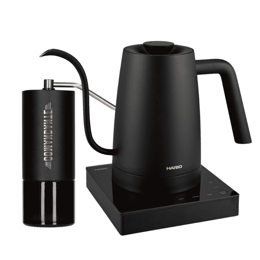 Elektryczny czajnik z wylewką goose-neck, regulacją temperatury 50–96 °C i funkcją keep-warm. Matowa czerń idealnie pasuje do Comandante – razem tworzą najbardziej stylowy i skuteczny duet do alternatyw.