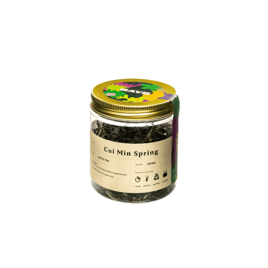 Biała herbata Cui Min Spring oczarowuje swoją kompleksowością i soczystym smakiem przy zachowaniu delikatności. Pochodzi z ekologicznych upraw w Quingshan (Świecąca Góra) w prowincji Hunan w Chinach, z wysokości do 750 m n.p.m. Liście pochodzą ze zbioru wiosennego, co gwarantuje najwyższą jakość. Aksamitna, słodka, o owocowym aromacie.