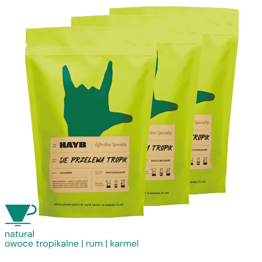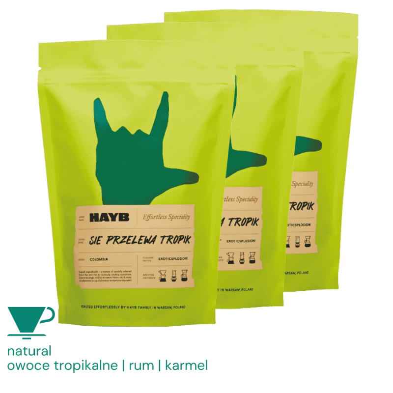 Kawa ziarnista Specialty Się Przelewa Tropik – Zestaw 3 x 1 kg – Kolumbia z nutami tropikalnych owoców, rumu i karmelu – Palarnia HAYB