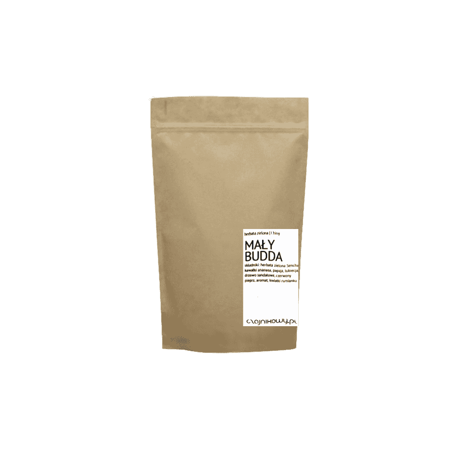 Herbata zielona Mały Budda to kultowa, egzotyczna mieszanka na bazie zielonej herbaty Sencha, wzbogacona ananasem, papają i lukrecją. Jej znakiem rozpoznawczym jest świeży, owocowy aromat oraz orientalny, lekko pikantny smak. To idealny wybór dla tych, którzy cenią niebanalne połączenia i zaskakującą głębię.