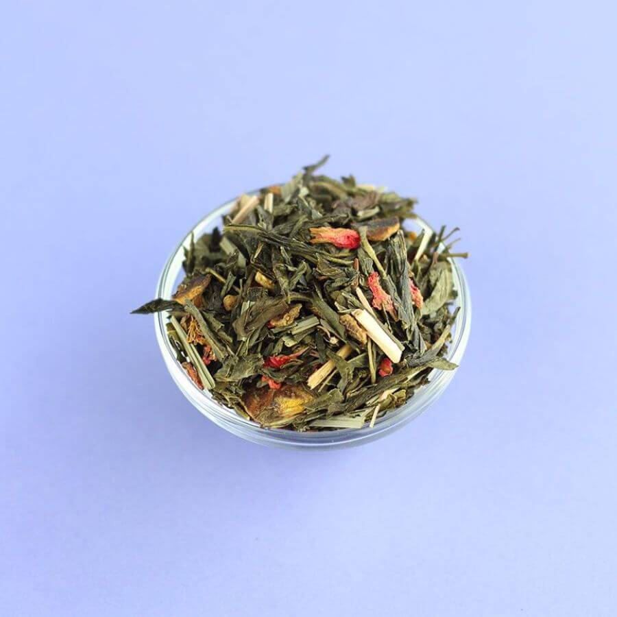 Orzeźwiająca, lekka i pełna egzotyki! Herbata zielona z granatem to niezwykłe połączenie zielonej herbaty sencha z kawałkami owocu granatu, liśćmi granatu oraz trawą cytrynową. Ta mieszanka zachwyca świeżym, cytrusowo-owocowym aromatem i doskonale sprawdzi się zarówno na ciepło, jak i w formie domowej ice tea.