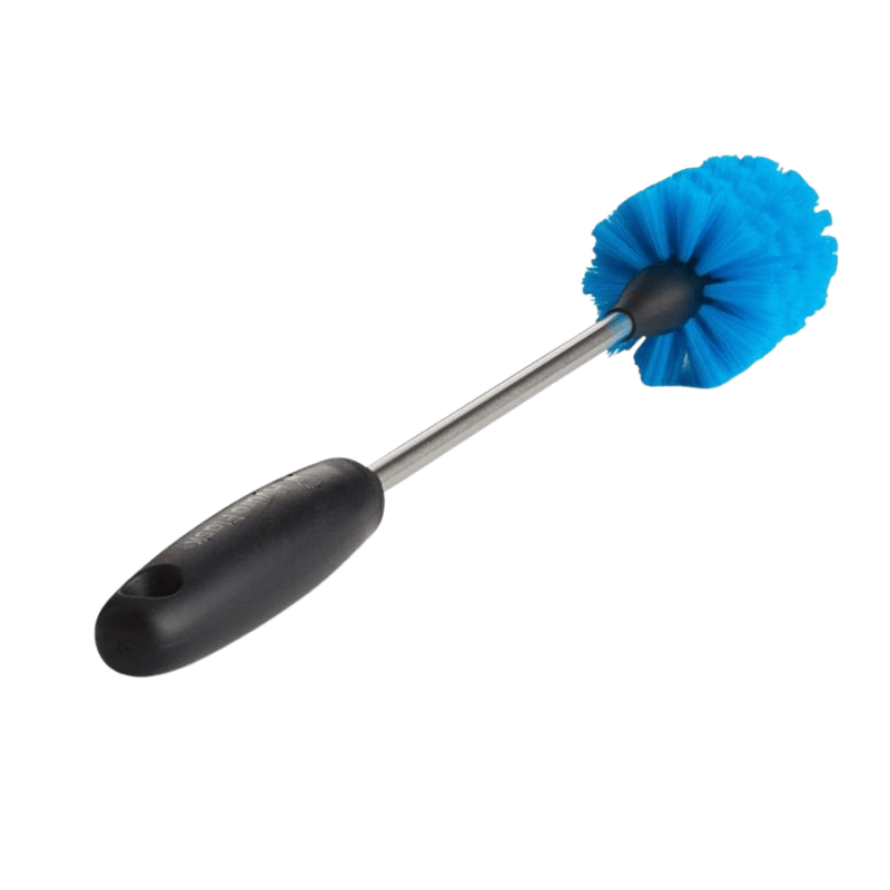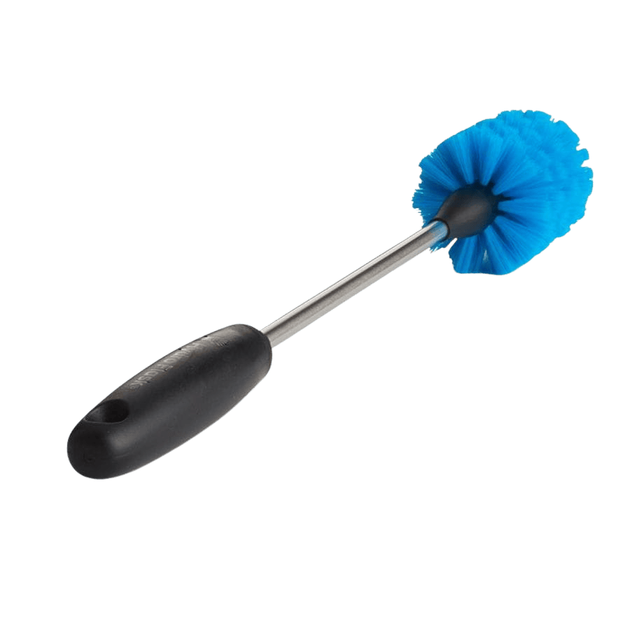 - Ergonomia i kontrola – antypoślizgowy, gumowany uchwyt zapewnia pewny chwyt nawet wtedy, gdy masz mokre ręce, co ułatwia manewrowanie szczotką wewnątrz wysokich butelek.