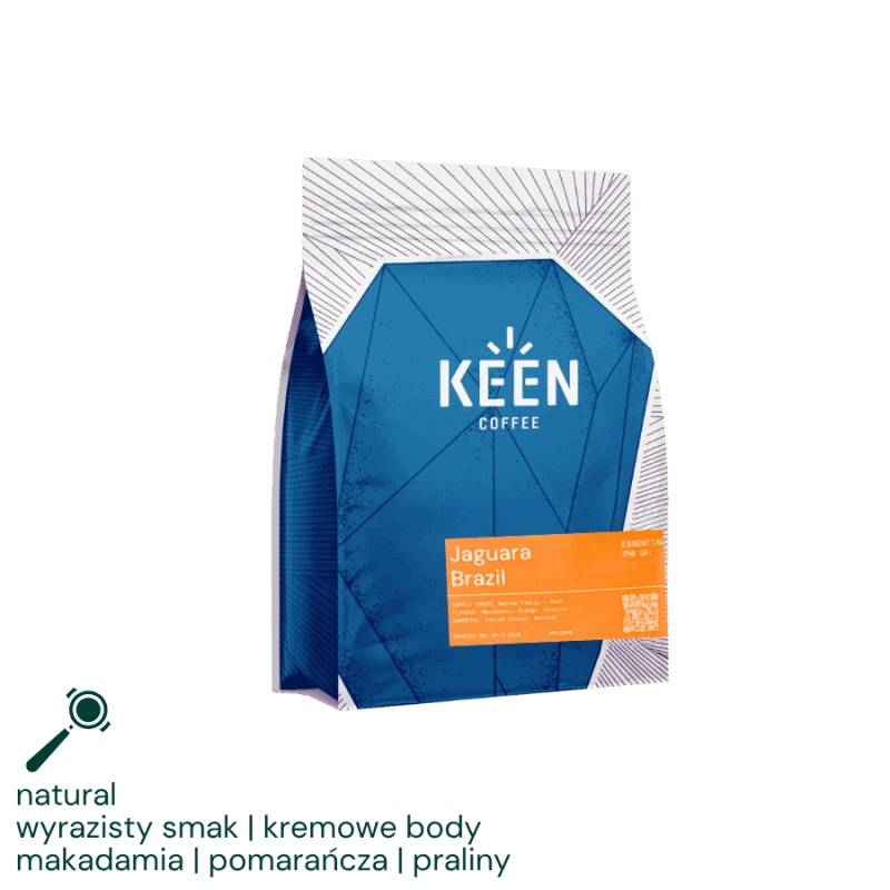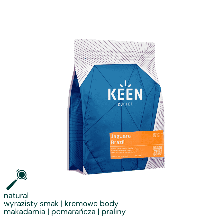 Jaguara to duma holenderskiej palarni Keen Coffee – kawa wybrana w ramach bezpośredniego handlu (direct trade) ze względu na swój wybitny i powtarzalny profil. Ziarna z regionu Campo das Vertentes dojrzewają w specyficznym mikroklimacie, który nadaje im wyjątkowej głębi. Dzięki tradycyjnej obróbce natural, Jaguara zachwyca gęstym, kremowym body. To Brazylia w wydaniu nowoczesnym: głęboka słodycz pralin i orzechów makadamia zostaje tu subtelnie przełamana rześkim akcentem soczystej pomarańczy.