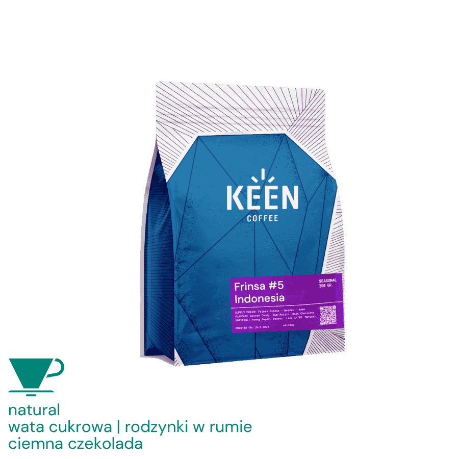 Dla kawowych poszukiwaczy, którzy kochają profile "bold & funky". Jeśli szukasz w filiżance bezkompromisowej słodyczy i nietypowych, deserowo-alkoholowych akcentów, Frinsa #5 od Keen Coffee całkowicie Cię zaskoczy i zredefiniuje Twoje spojrzenie na kawę z Indonezji.