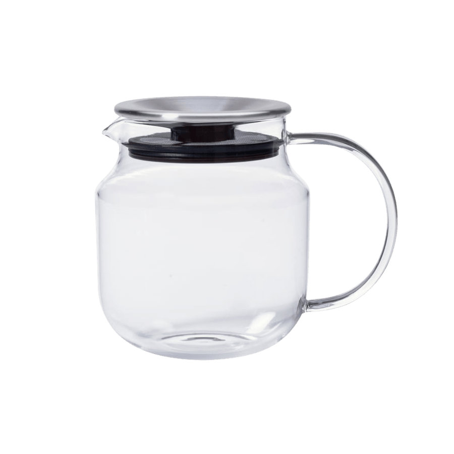 Kinto One Touch rewolucjonizuje sposób, w jaki myślimy o zaparzaczach. Zamiast tradycyjnego koszyczka wewnątrz, sitko zostało wbudowane bezpośrednio w stalową pokrywkę. Rozwiązanie to daje liściom herbaty nieograniczoną przestrzeń w całym dzbanku, co pozwala im w pełni się rozwinąć i oddać głębię aromatu. Podczas nalewania, silikonowa uszczelka utrzymuje pokrywę na miejscu, a drobne sitko precyzyjnie filtruje napar, zatrzymując fusy wewnątrz naczynia.