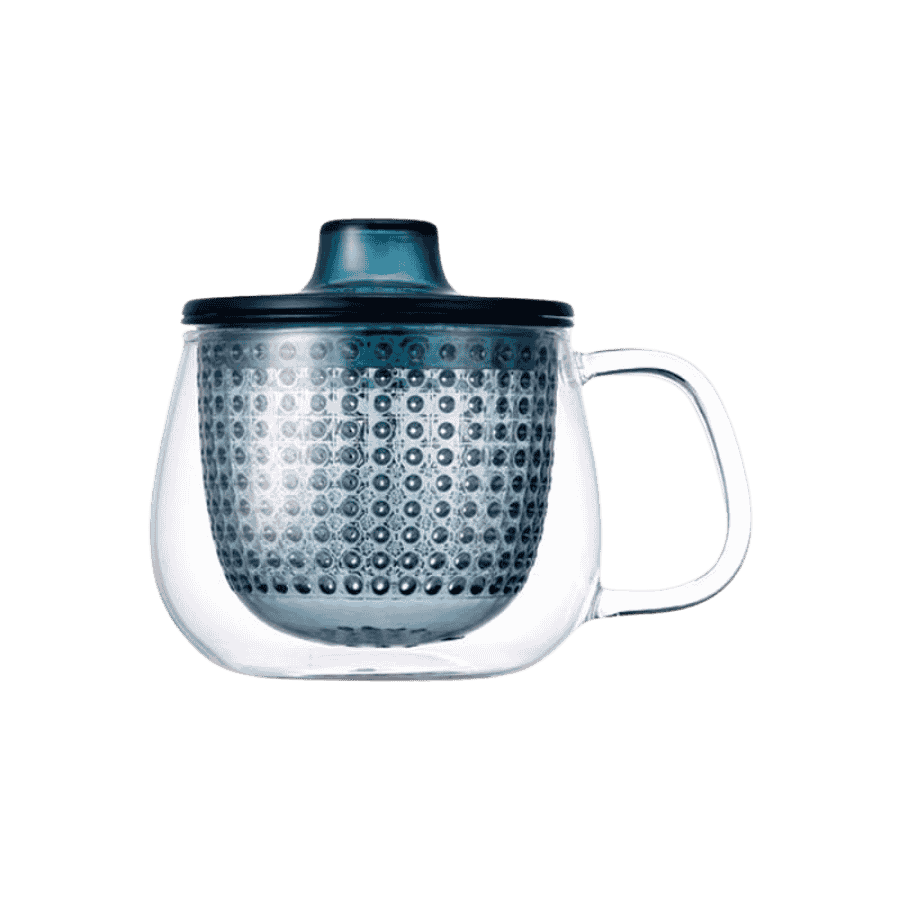 Model Unimug Navy to dowód na to, że proste rozwiązania są najlepsze. Korpus kubka wykonano z wysokiej jakości szkła borokrzemowego, które jest odporne na wysokie temperatury i nie absorbuje zapachów. Szerokie, ergonomiczne ucho pozwala na pewny chwyt, a granatowy filtr z tworzywa wolnego od BPA (kopoliestru) gwarantuje trwałość – nie tłucze się i zachowuje swoją formę nawet przy częstym użytkowaniu. Dzięki swojej budowie filtr pozwala liściom herbaty na pełną cyrkulację, co uwalnia maksimum smaku.