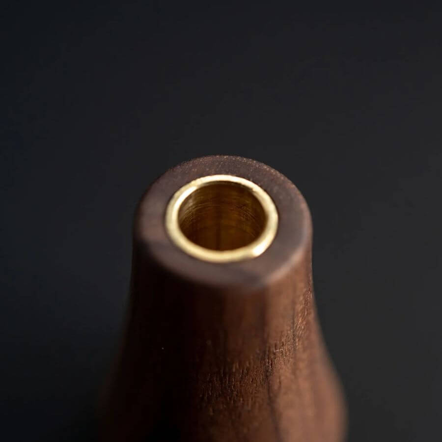 - Rękojeść z orzecha włoskiego – ręcznie toczona gałka z drewna orzechowego mocowana na magnes podnosi komfort pracy i estetykę.