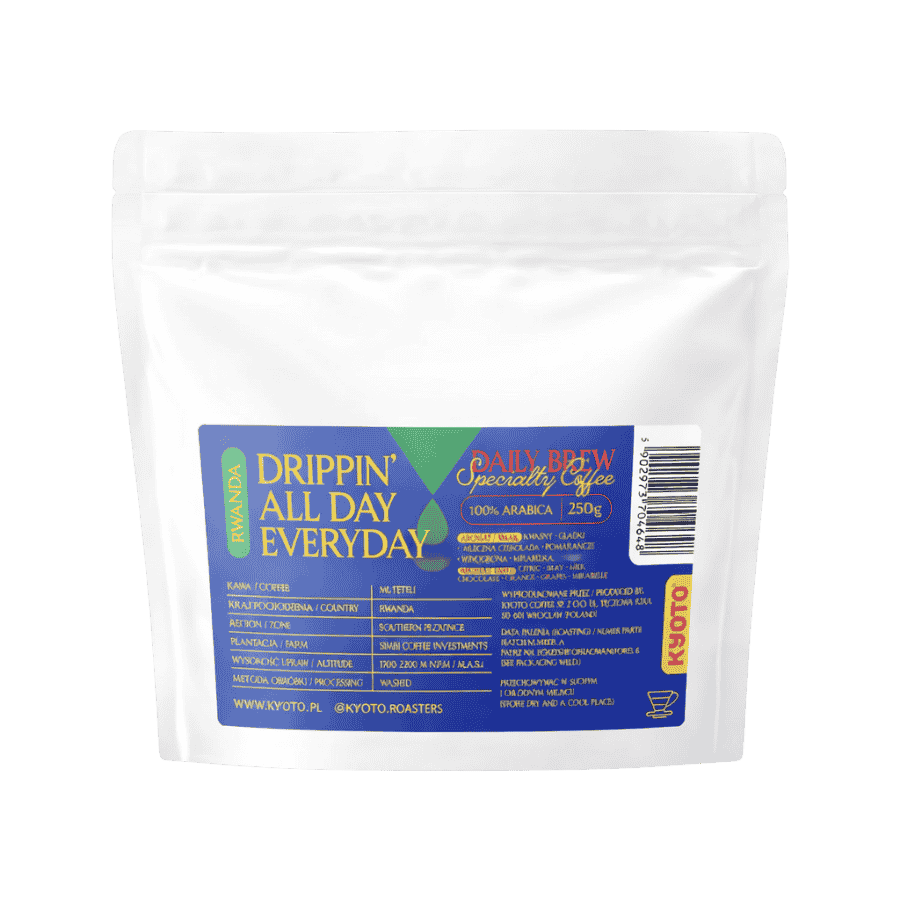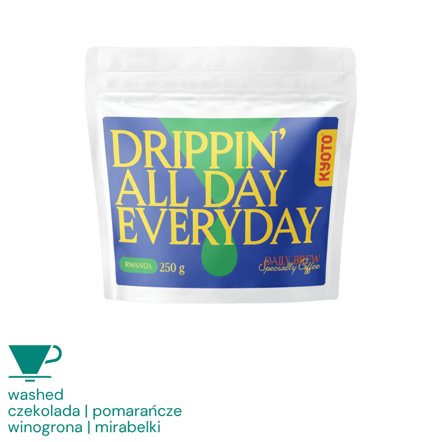 Kawa Kyoto DRIPPIN' ALL DAY EVERYDAY Rwanda Muteteli Filter 250g – z nutami czekolady, pomarańczy, winogron i mirabelki