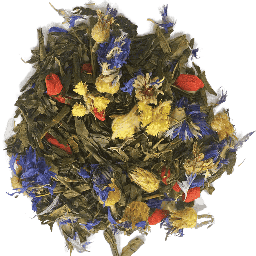 Lekka i aromatyczna kompozycja zielonej herbaty Sencha z jagodami goji oraz kwiatem kocanki. Napar o złocisto-zielonej, klarownej barwie zachwyca delikatnym smakiem oraz bogactwem naturalnych składników wspierających witalność i zdrowie każdego dnia.