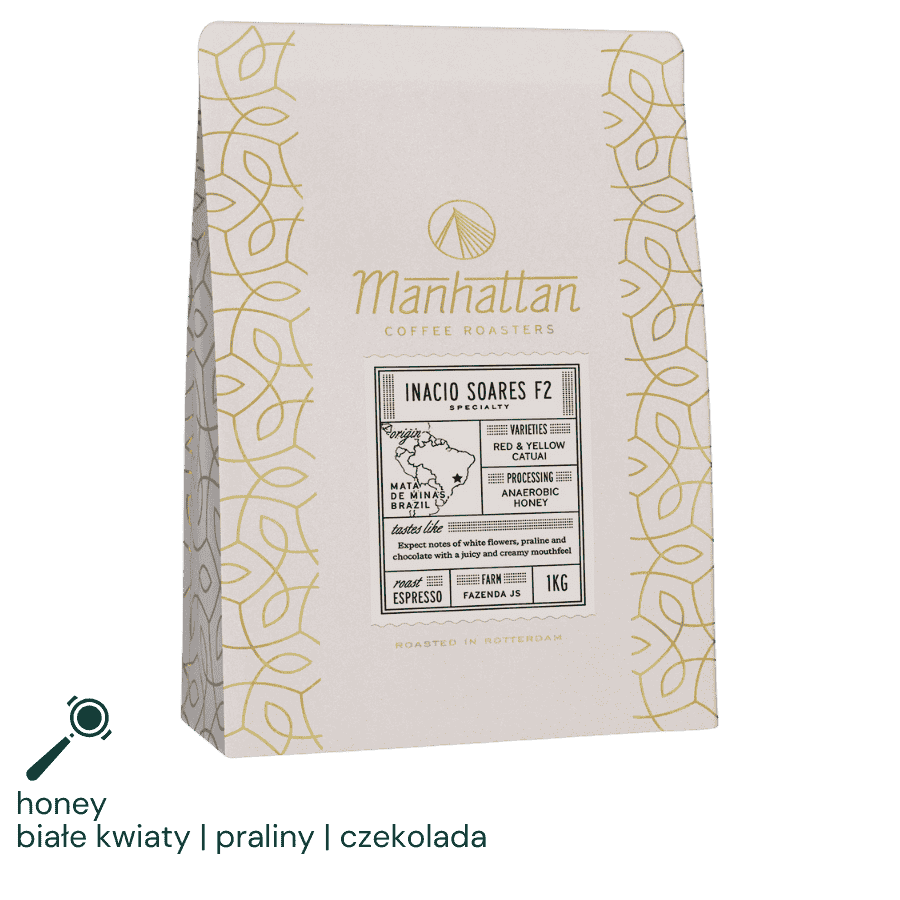 Kawa ziarnista Specialty Inacio Soares F2 1 kg – Brazylia z nutami białych kwiatów, pralin i czekolady – Palarnia Manhattan