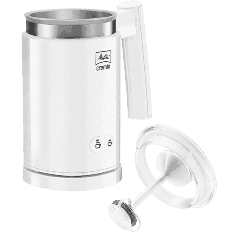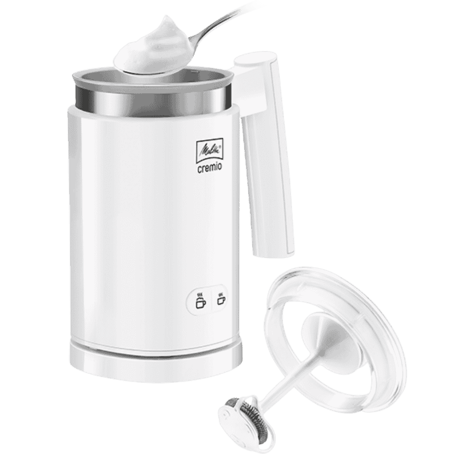 Odkryj sekret perfekcyjnego cappuccino i latte macchiato. Melitta Cremio to intuicyjny spieniacz, który za naciśnięciem jednego przycisku wyczaruje dla Ciebie kremową, sztywną piankę – dokładnie taką, jak z najlepszej kawiarni.