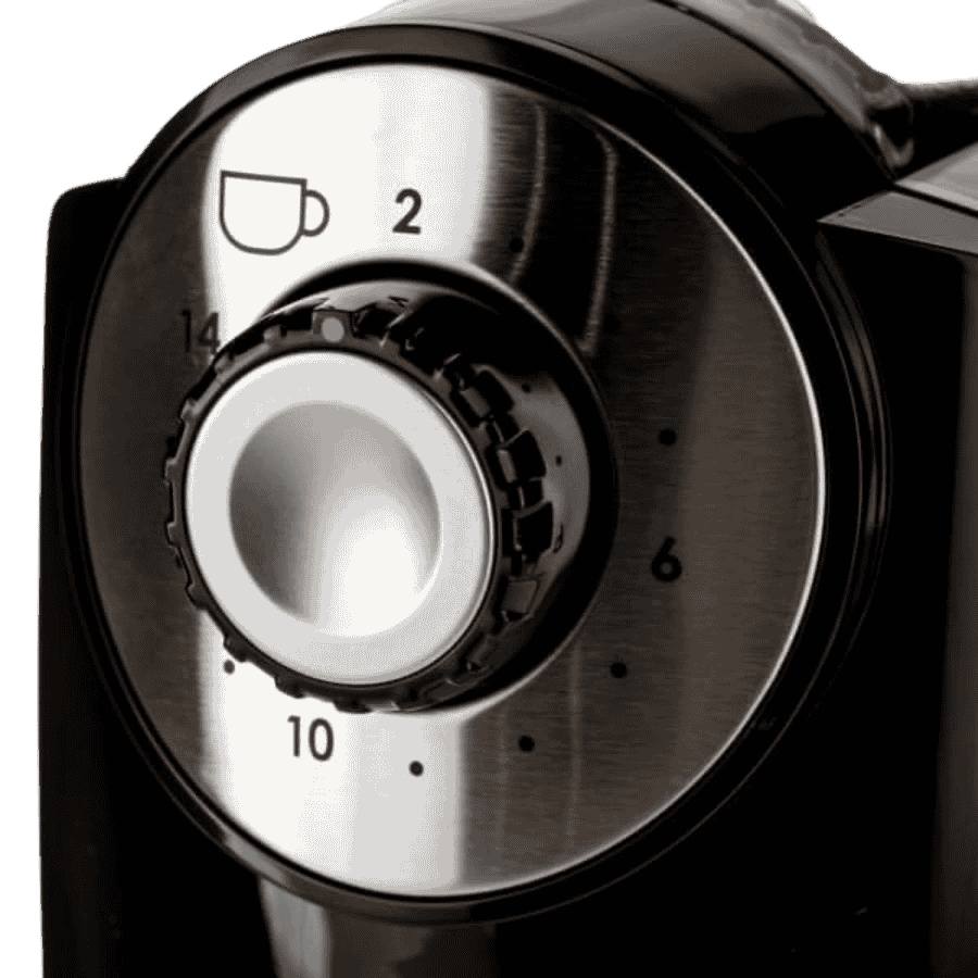 Koniec z odmierzaniem kawy "na oko". Melitta Molino posiada intuicyjne pokrętło na froncie, które pozwala wybrać liczbę filiżanek (od 2 do 14). Młynek sam dobierze czas pracy i wyłączy się automatycznie po zakończeniu procesu. Zbiornik na ziarna o pojemności 200g chroni kawę przed wietrzeniem, zapewniając zapas na wiele porcji świeżego naparu bez konieczności ciągłego uzupełniania.