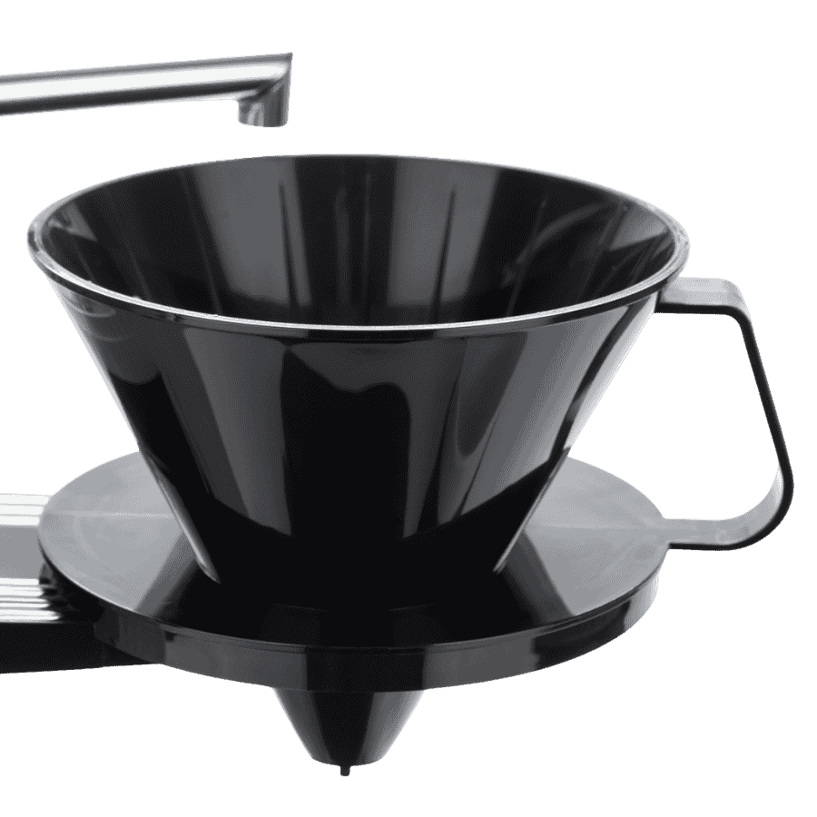 - Automatyczne wyłączanie – ekspres kończy pracę natychmiast po przepłynięciu wody przez filtr, oszczędzając energię.