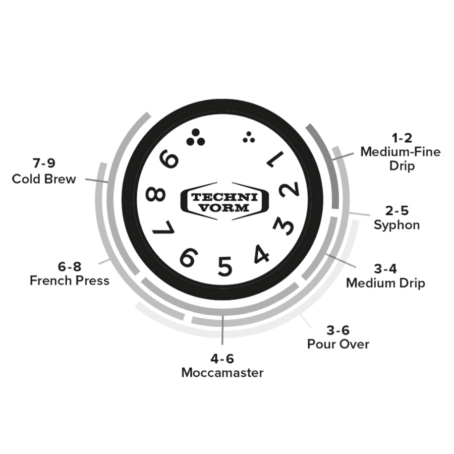 Został zoptymalizowany pod metody przelewowe (ekspresy Moccamaster, V60, Chemex, AeroPress), ale szeroki zakres regulacji pozwala eksperymentować z różnymi grubościami mielenia.