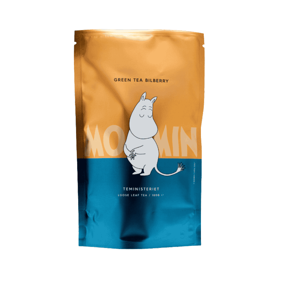 Moomin to seria sypanych herbat inspirowanych mieszkańcami Doliny Muminków, otoczonej górami, lasami i morzem. To idealna inspiracja do fantastycznych przygód. Green Tea Bilberry to mieszanka zielonej herbaty z porzeczką, jagodą, kwiatami bławatka, słonecznika, aksamitki i płatkami róż. Każdy łyk to mała przygoda w krainie Muminków.