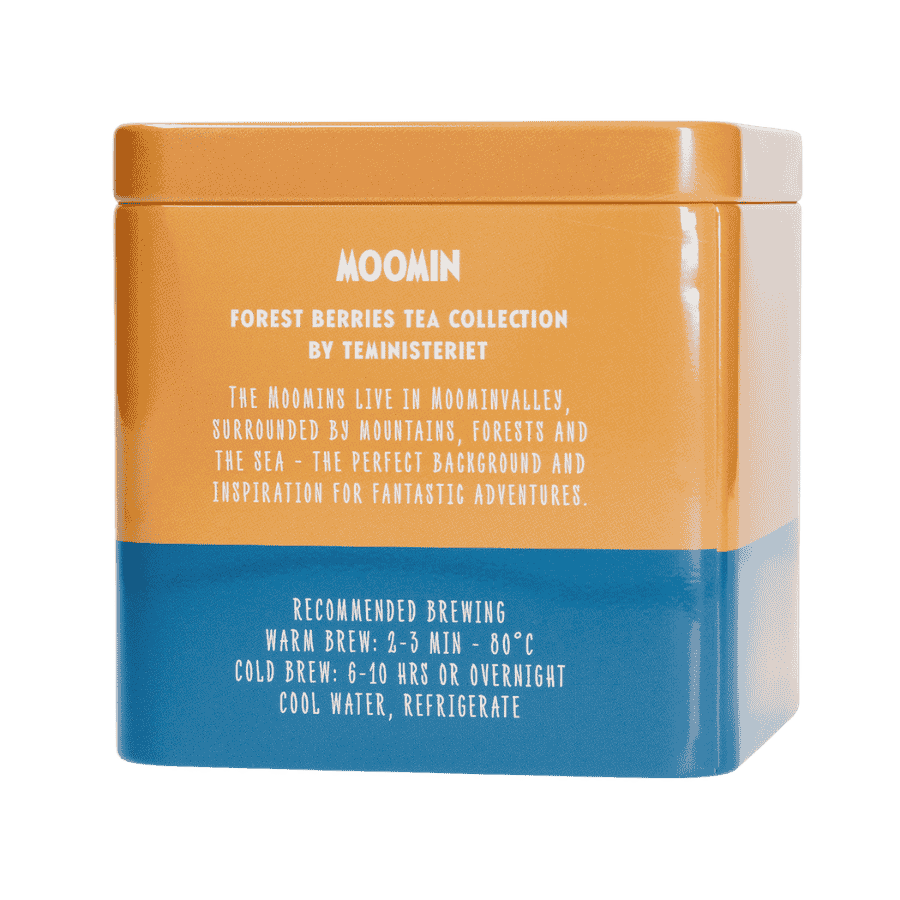 Moomin to seria sypanych herbat inspirowanych mieszkańcami Doliny Muminków, otoczonej górami, lasami i morzem. To idealna inspiracja do fantastycznych przygód. Green Tea Bilberry to mieszanka zielonej herbaty z porzeczką, jagodą, kwiatami bławatka, słonecznika, aksamitki i płatkami róż. Każdy łyk to mała przygoda w krainie Muminków.