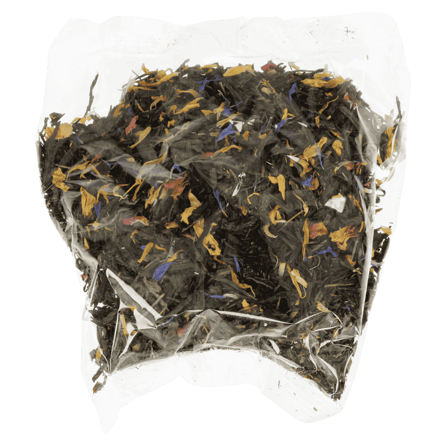 - Bogata kompozycja owocowo-kwiatowa – połączenie jagody, porzeczki, płatków róż i kwiatów bławatka, słonecznika oraz aksamitki tworzy niepowtarzalny smak.