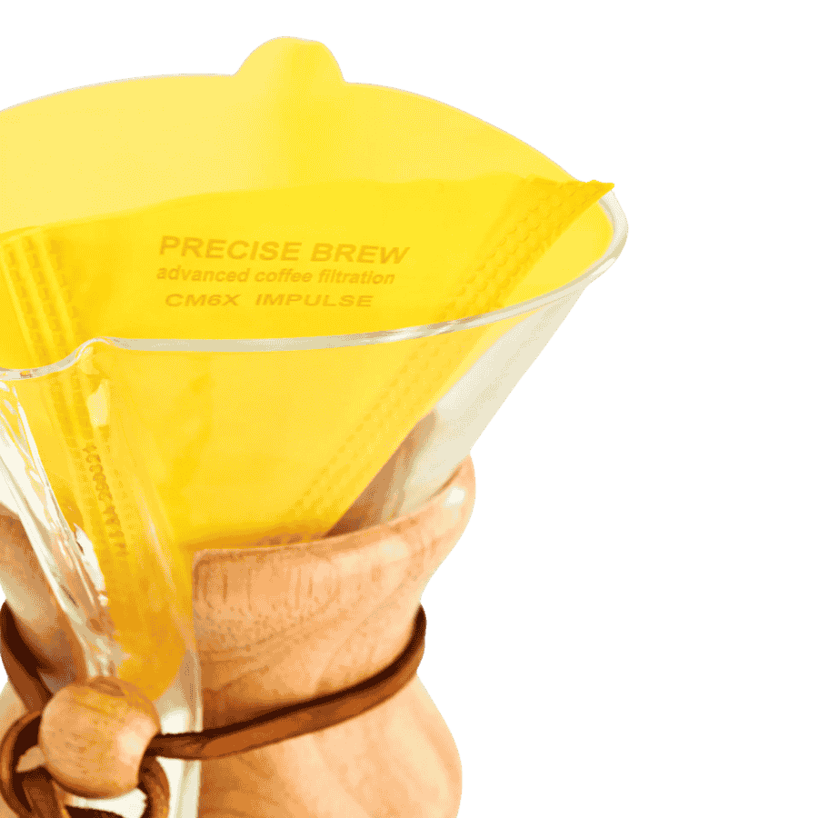 Filtry Precise Brew to rewolucja w parzeniu metodami przelewowymi, łącząca troskę o środowisko z bezkompromisową jakością naparu. Model Impulse w jaskrawym, żółtym kolorze został zaprojektowany specjalnie dla większych zaparzaczy Chemex (6, 8 i 10 filiżanek). Dzięki zastosowaniu innowacyjnego materiału, filtr pozwala na wykonanie nawet 1000 cykli parzenia, co czyni go niezwykle ekonomiczną i ekologiczną alternatywą dla papieru. Wyjątkowa struktura Impulse równoważy intensywność kwasowości, nadając kawie pożądaną teksturę i czystość smaku.
