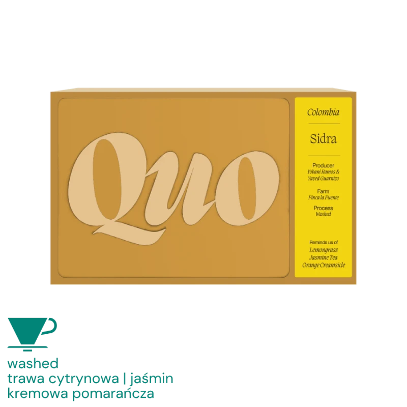 Kawa Quo Kolumbia La Fuente Sidra Filter 200g – Szlachetna odmiana Sidra z nutami trawy cytrynowej, jaśminu i kremowej pomarańczy
