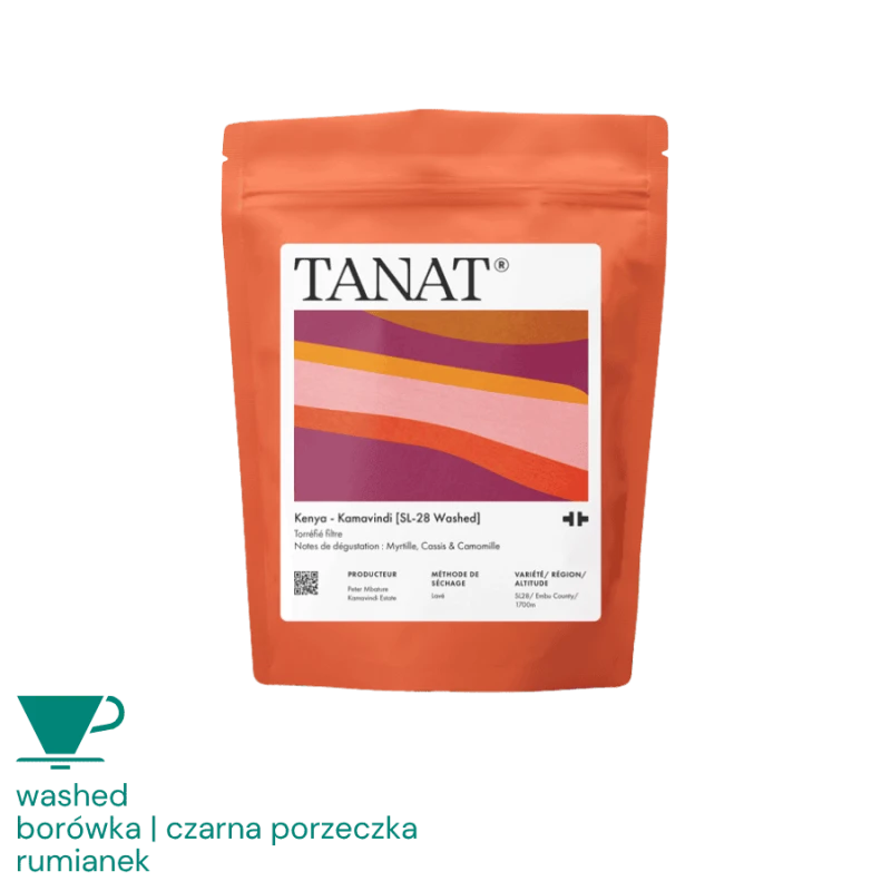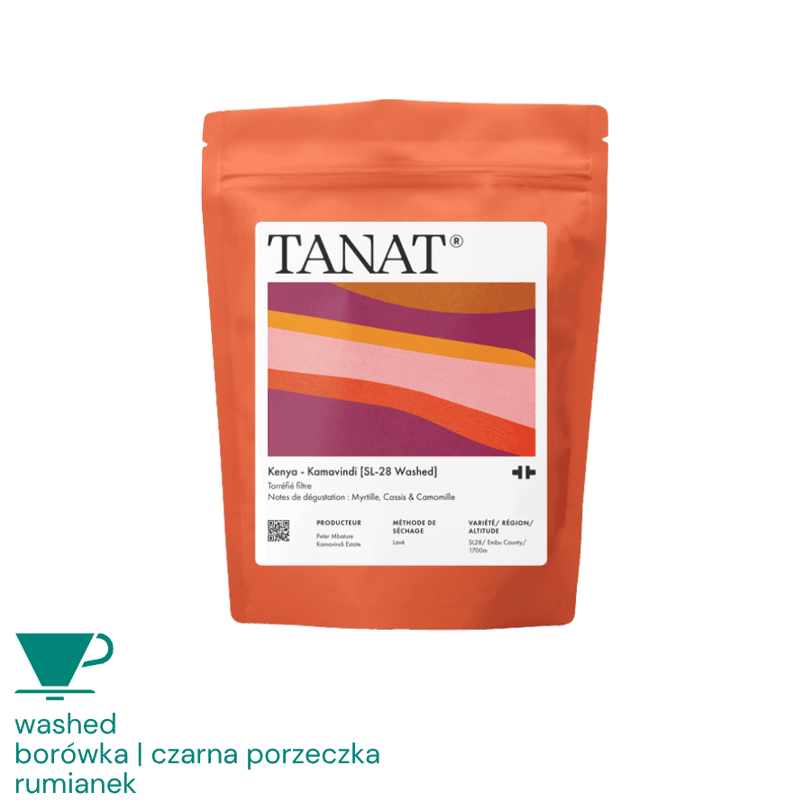 Kamavindi SL-28 to kenijska kawa specialty z odmiany SL-28, obrabiana metodą washed. Jasne palenie Tanat Coffee wydobywa z niej czystość i intensywność dedykowaną metodom przelewowym. W filiżance dominują soczyste jagody, wyrazista czarna porzeczka i delikatny rumianek – kawa rześka, czysta i niezwykle aromatyczna, z żywą kwasowością i delikatnym ciałem.