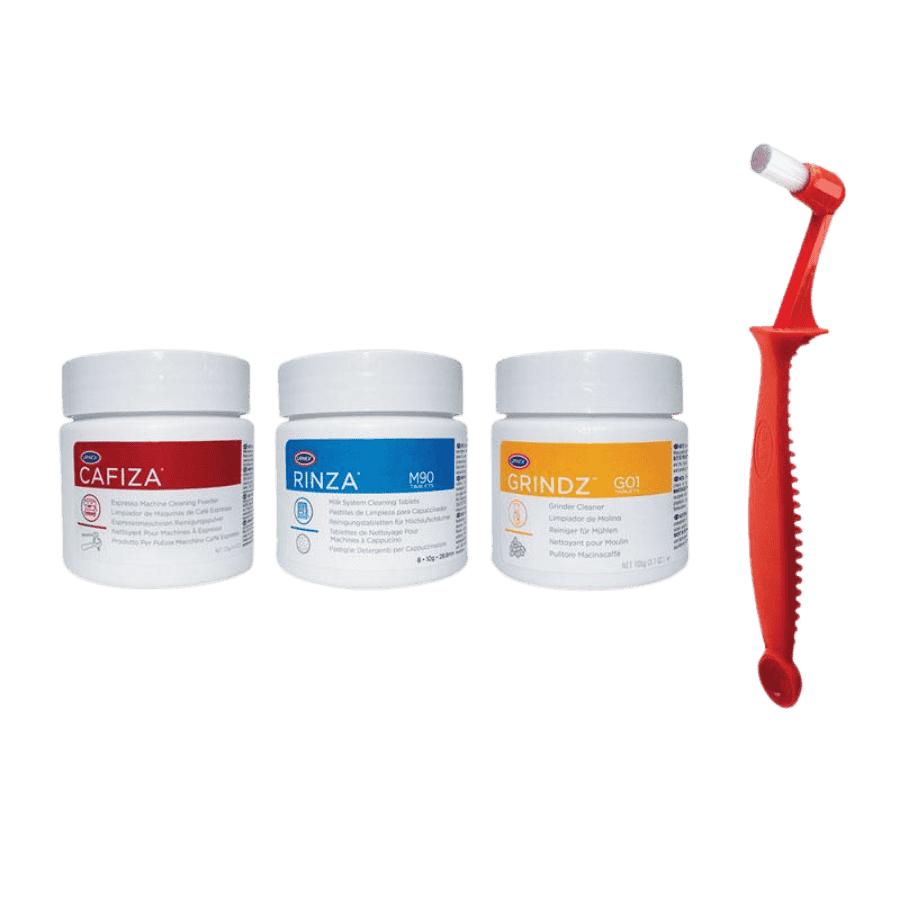 Cafiza 125 g + Rinza 8 × 10 g + Grindz 105 g + Scoopz |