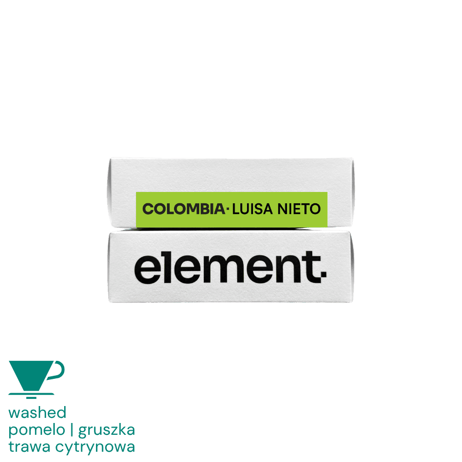 Luisa Nieto od element. to esencja kolumbijskiej odmiany Aji – pomelo, gruszka i trawa cytrynowa w czystym, mytym wydaniu. Jasne palenie i proces washed tworzą kawę rześką, soczystą i niezwykle aromatyczną. 100 g orzeźwiającej przyjemności dla miłośników cytrusowo-owocowych przelewów.